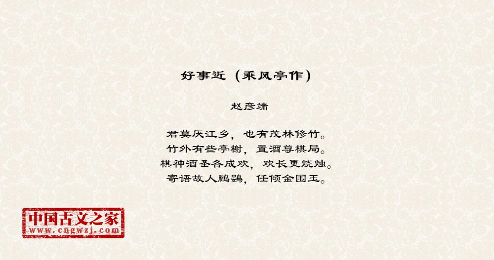《好事近(乘风亭作)》的原文打印版(赵彦端)