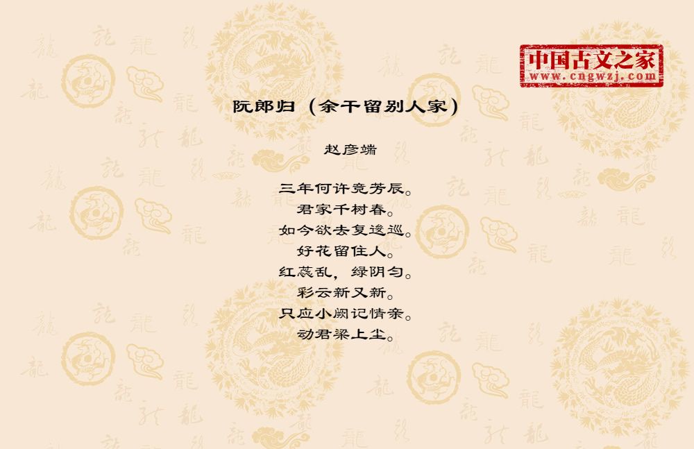 《阮郎归(余干留别人家)》的原文打印版(赵彦端)