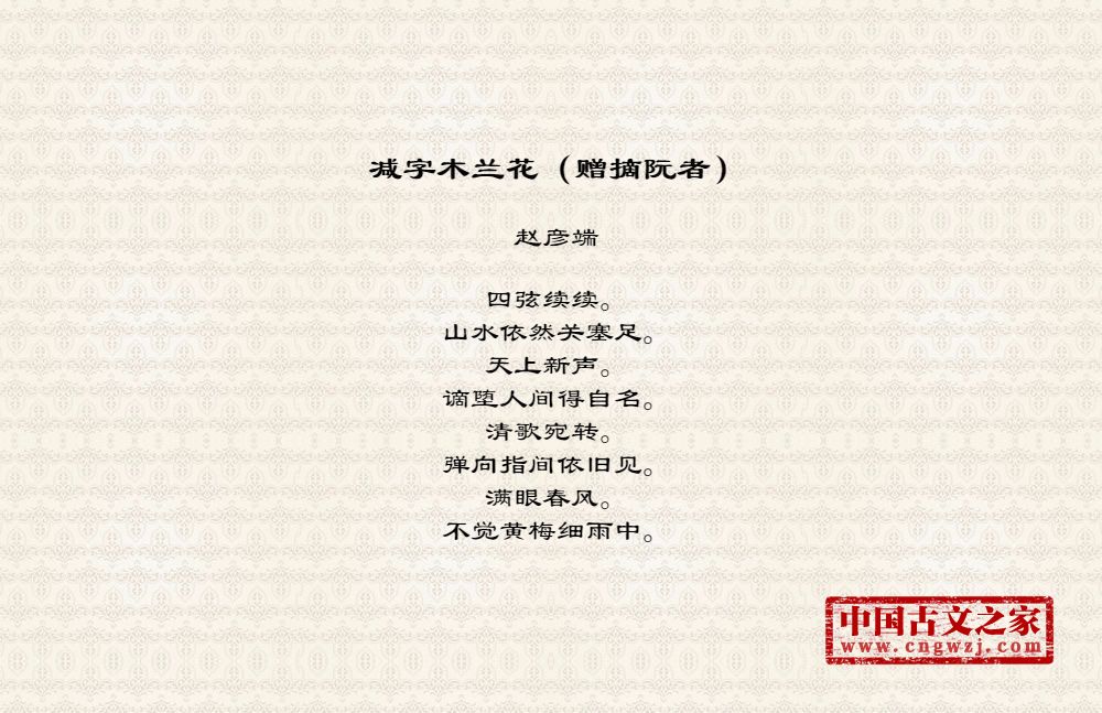 《减字木兰花(赠摘阮者)》由赵彦端创作