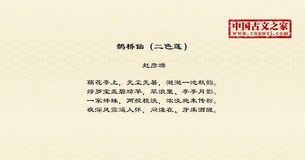 《鹊桥仙(二色莲)》的原文打印版(赵彦端)