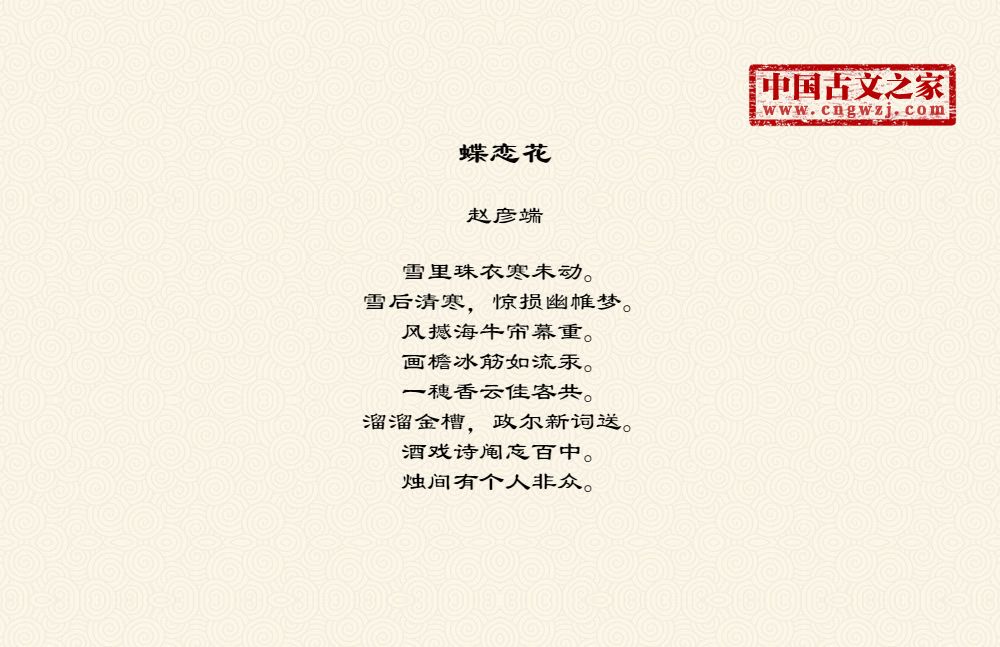 《蝶恋花》的原文打印版(赵彦端)