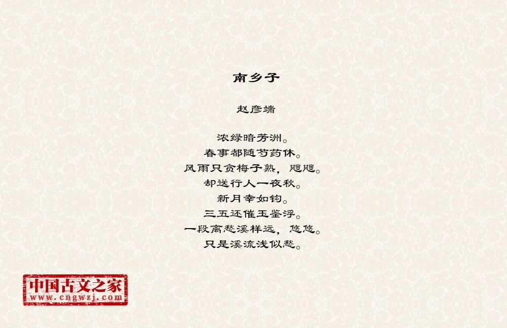 《南乡子》的原文打印版(赵彦端)