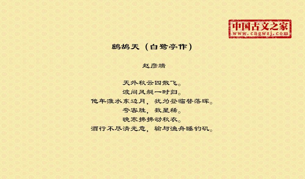 《鹧鸪天(白鹭亭作)》的原文打印版(赵彦端)