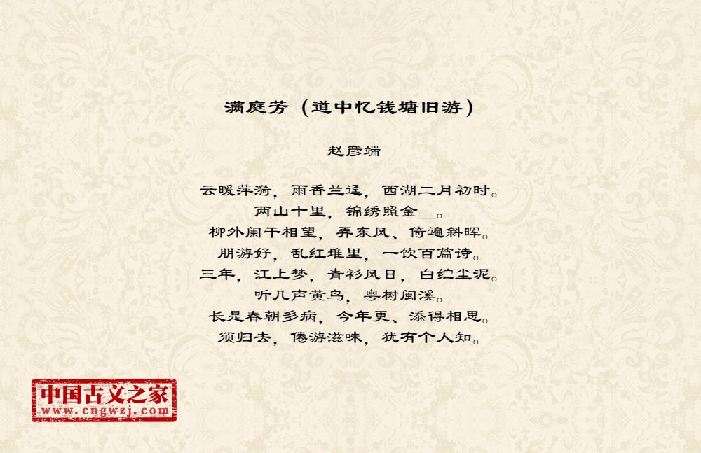 《满庭芳(道中忆钱塘旧游)》由赵彦端创作