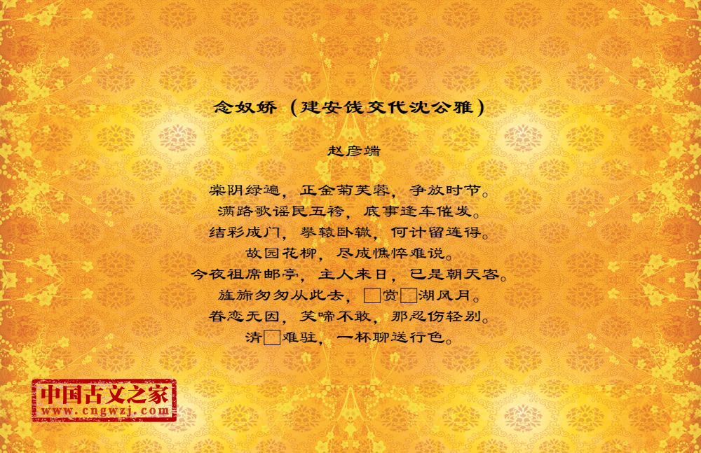 《念奴娇(建安饯交代沈公雅)》的原文打印版(赵彦端)