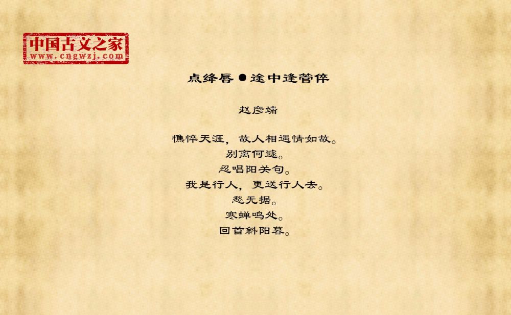 憔悴天涯,故人相遇情如故。