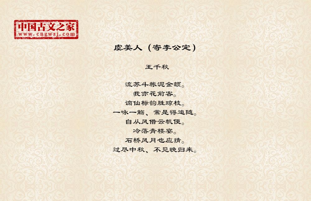 《虞美人(寄李公定)》的原文打印版(王千秋)