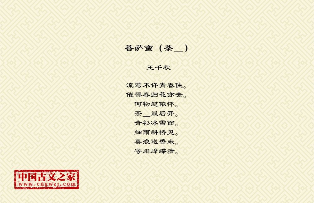 《菩萨蛮(荼_)》的原文打印版(王千秋)
