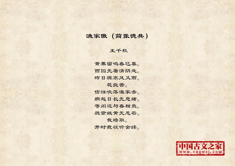《渔家傲(简张德共)》的原文打印版(王千秋)
