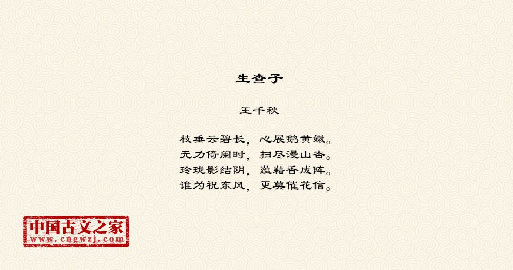《生查子》的原文打印版(王千秋)