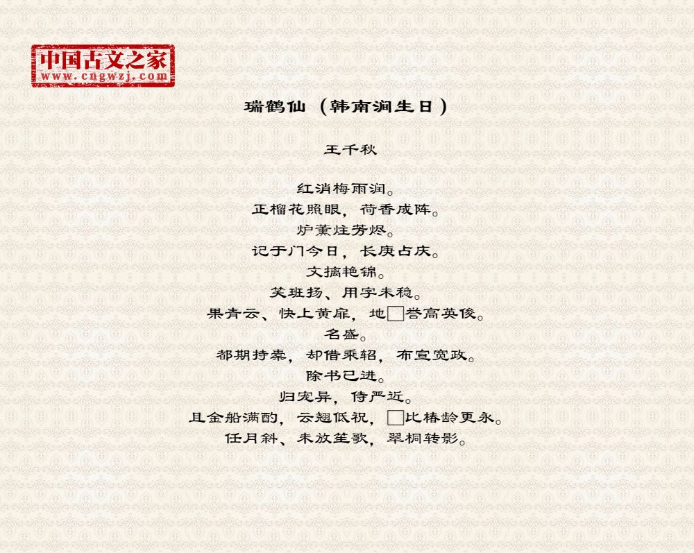 瑞鹤仙(韩南涧生日)