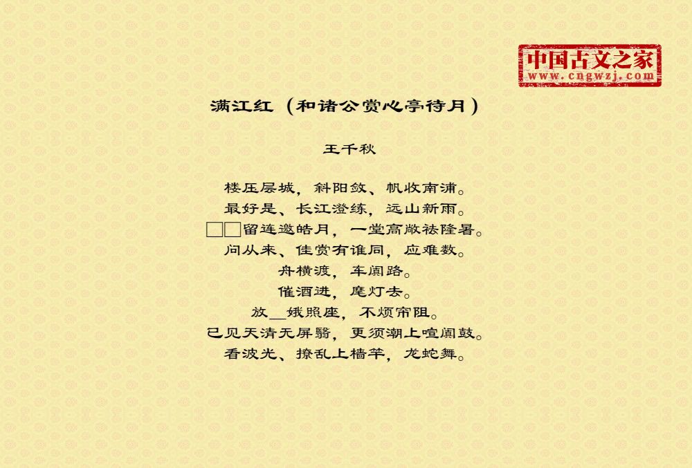 《满江红(和诸公赏心亭待月)》的原文打印版(王千秋)