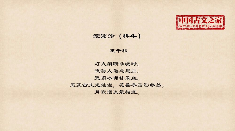 《浣溪沙(科斗)》的原文打印版(王千秋)