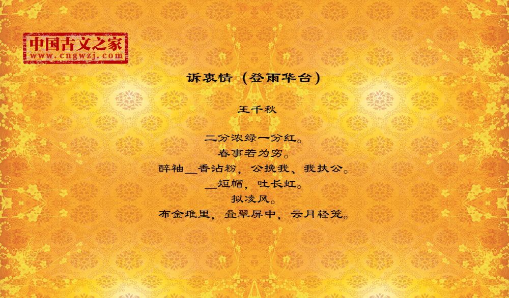 《诉衷情(登雨华台)》的原文打印版(王千秋)
