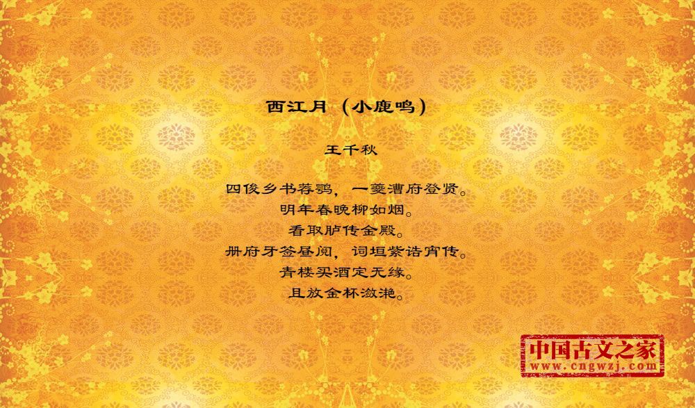 《西江月(小鹿鸣)》的原文打印版(王千秋)