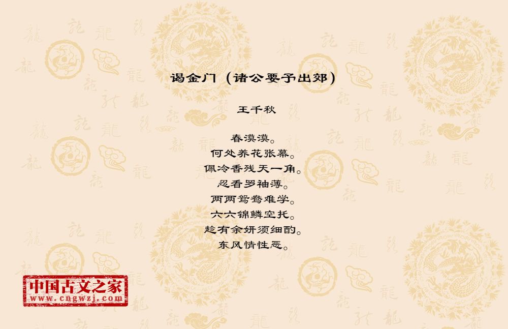 《谒金门(诸公要予出郊)》的原文打印版(王千秋)