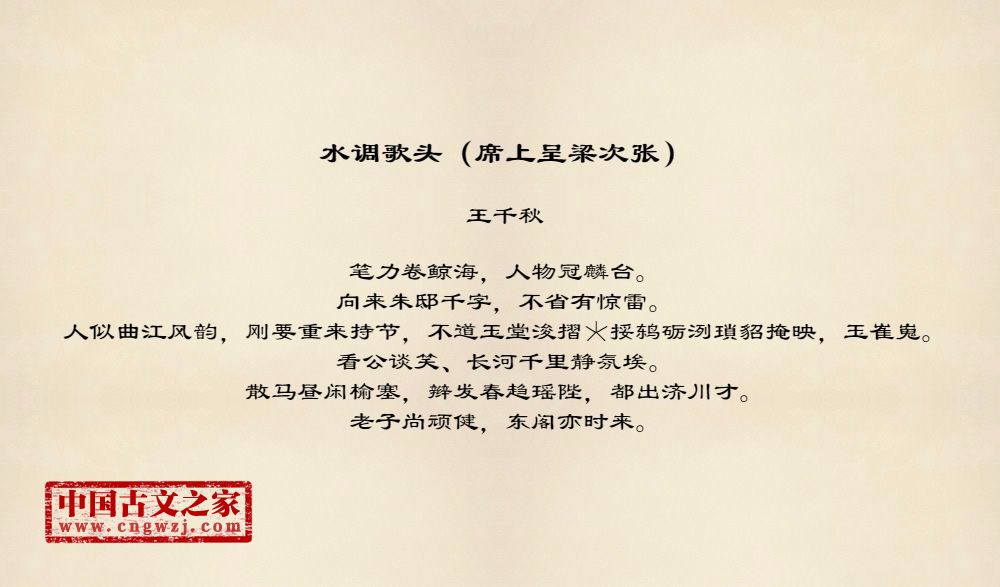 《水调歌头(席上呈梁次张)》由王千秋创作
