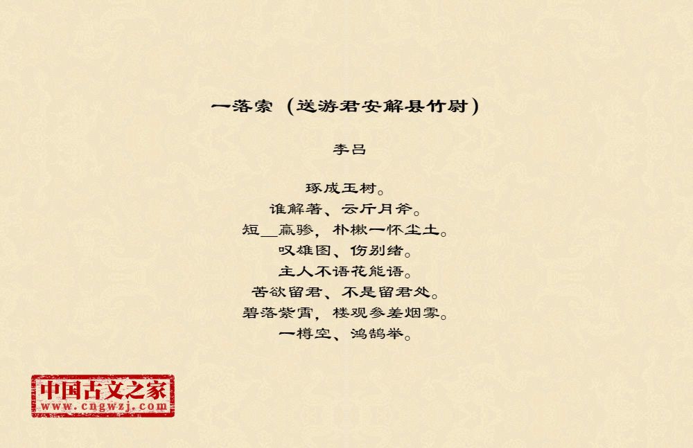 《一落索(送游君安解县竹尉)》的原文打印版(李吕)