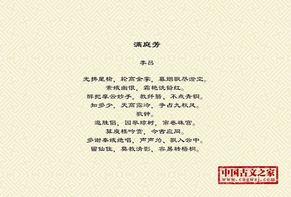 光拂星榆,轮高金掌,暮烟飘尽澄空。素娥幽恨,霜艳洗铅红。醉把摩云妙手,教纤翳、不点青铜。知多少,天高露冷,争占九秋风。歌钟。邀胜侣,园攀琼树,帘卷珠宫。算庾楼吟赏,今古应同。多谢秦娥绝唱,声声为、飘入云中。留仙住,莫教清影,容易转梧桐。
