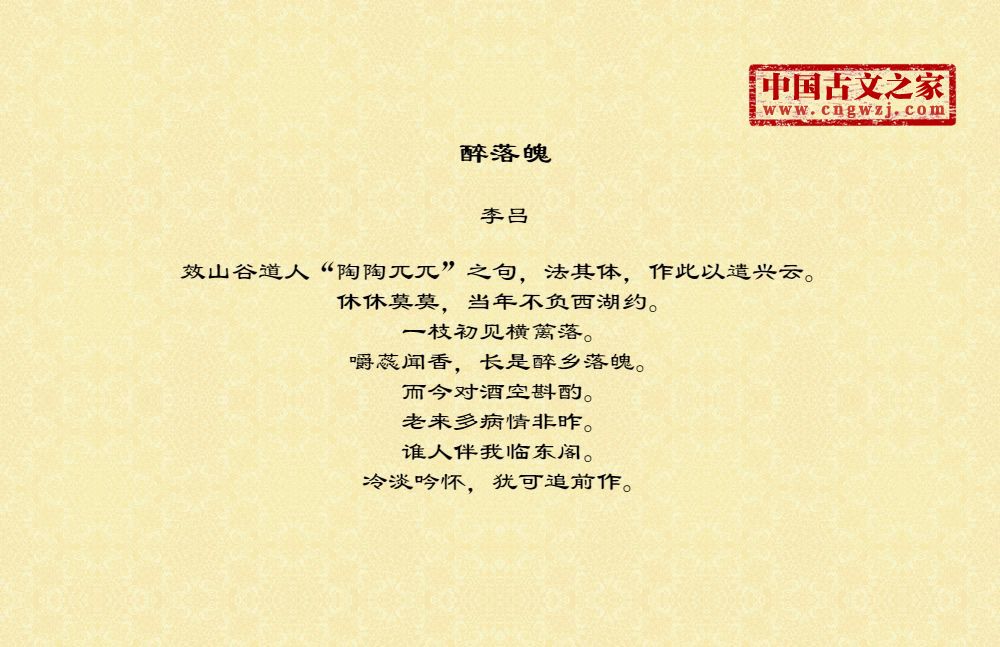 《醉落魄》的原文打印版(李吕)