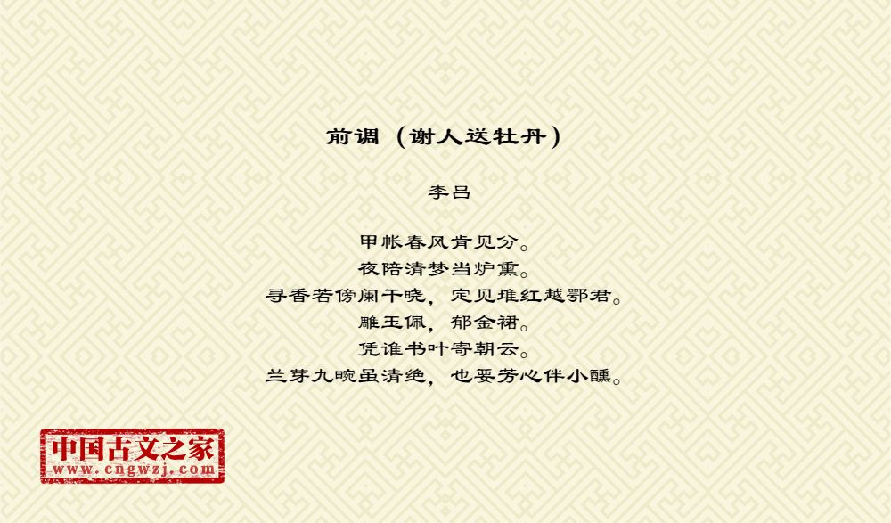 《前调(谢人送牡丹)》的原文打印版(李吕)