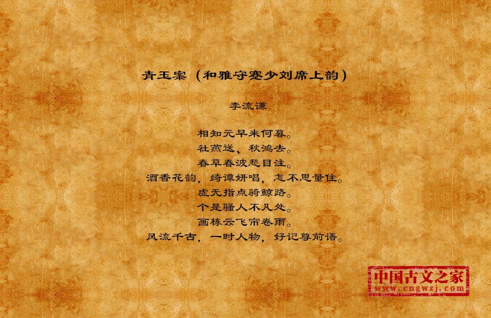 《青玉案(和雅守蹇少刘席上韵)》由李流谦创作