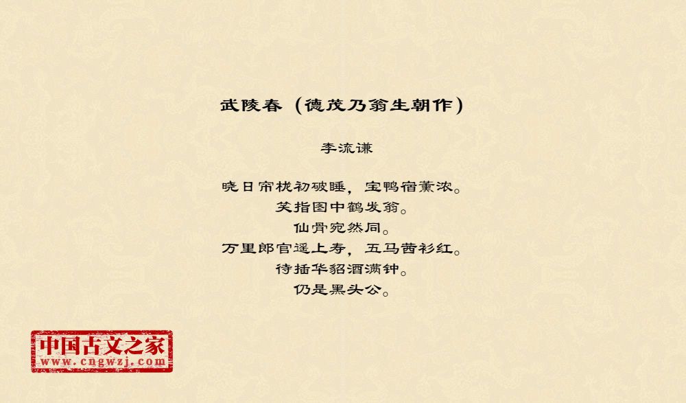 《武陵春(德茂乃翁生朝作)》的原文打印版(李流谦)