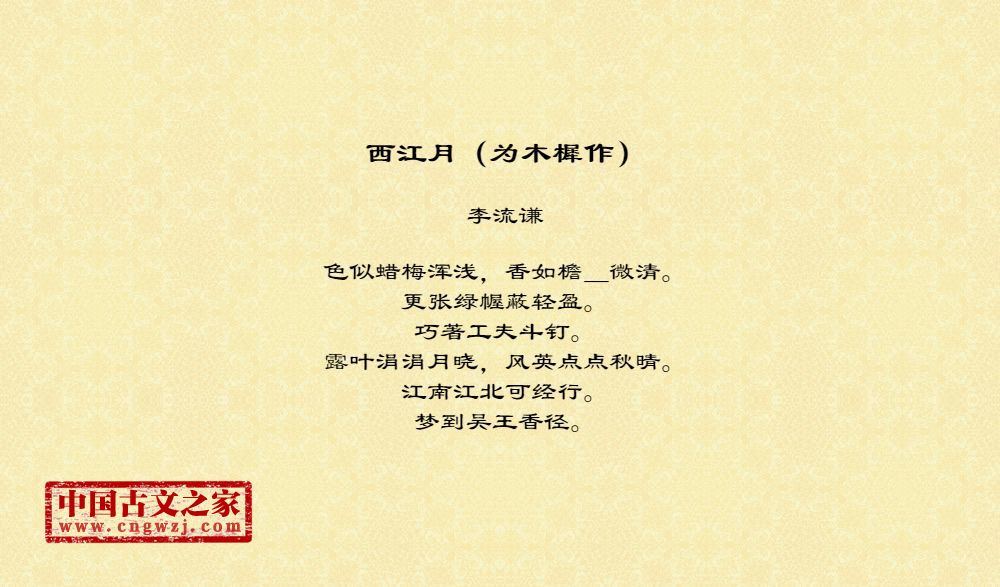 《西江月(为木樨作)》的原文打印版(李流谦)