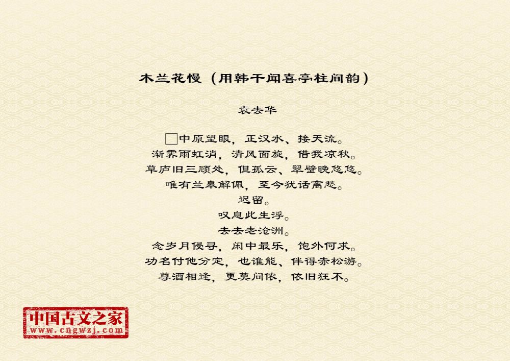 《木兰花慢(用韩干闻喜亭柱间韵)》的原文打印版(袁去华)
