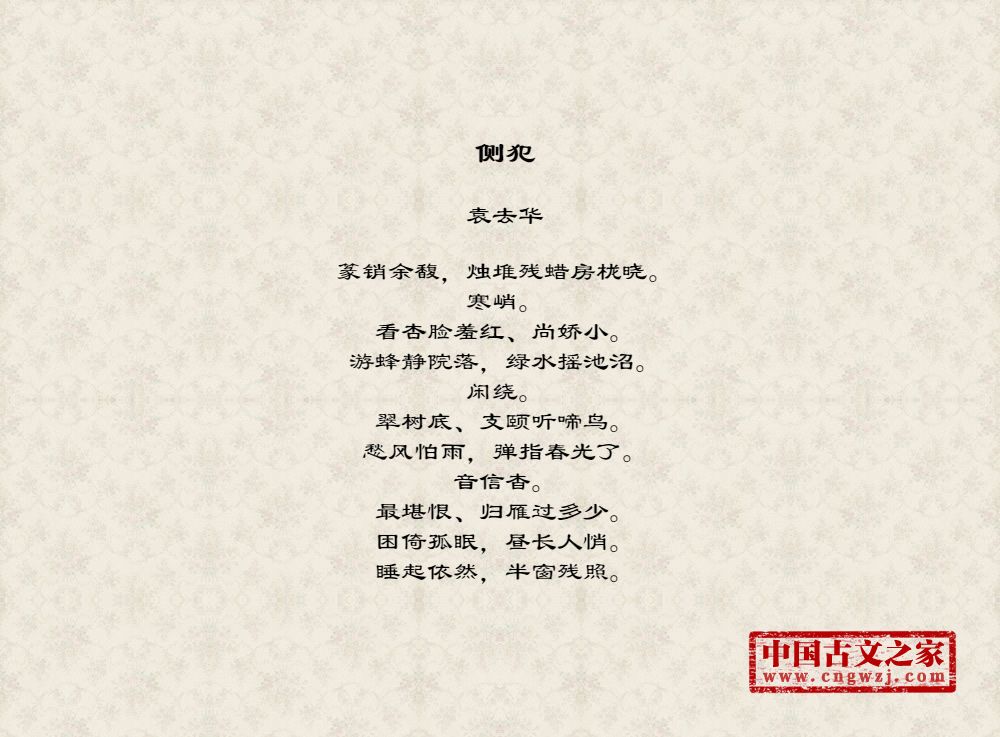 困倚孤眠,昼长人悄。