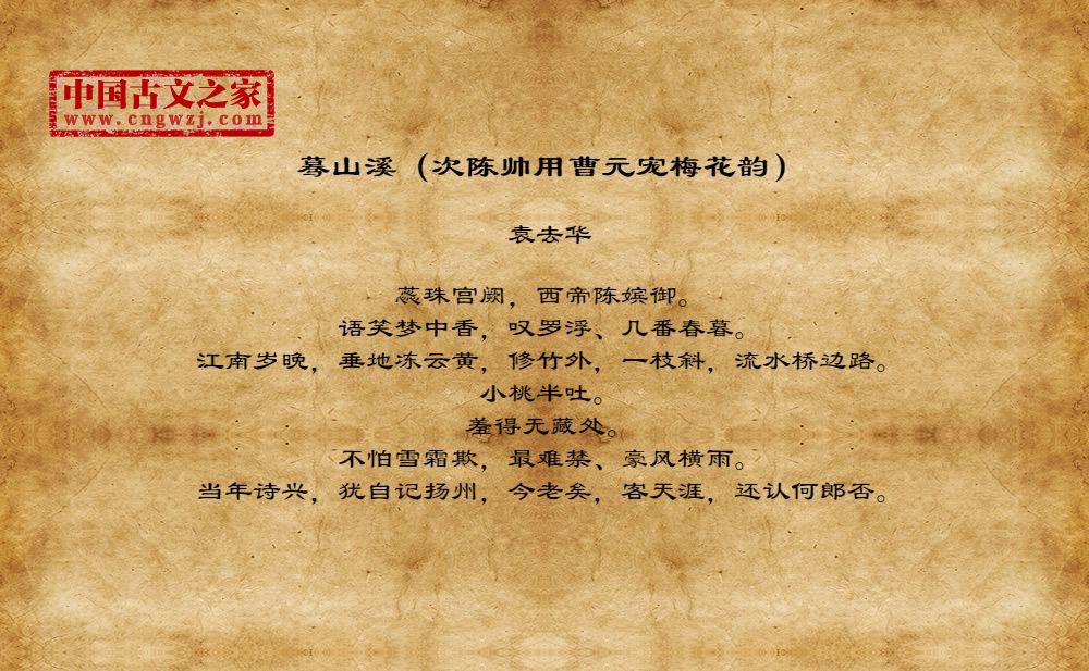 《蓦山溪(次陈帅用曹元宠梅花韵)》的原文打印版(袁去华)