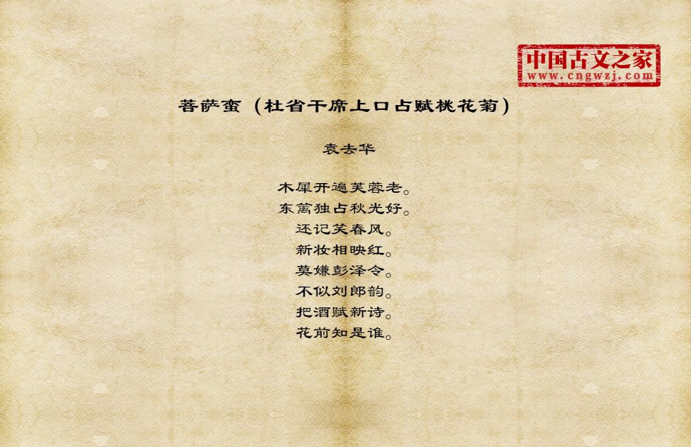 《菩萨蛮(杜省干席上口占赋桃花菊)》的原文打印版(袁去华)