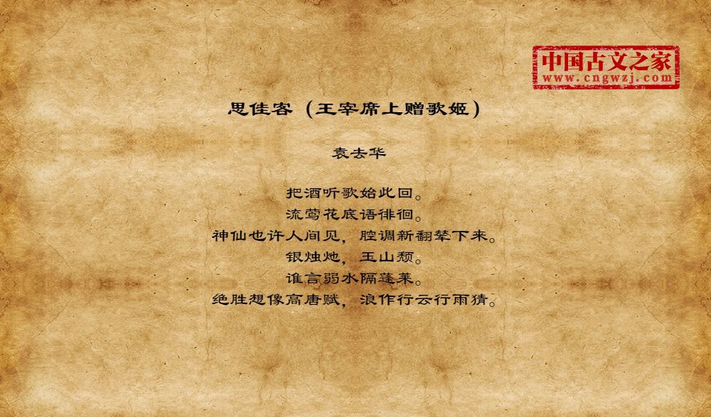 《思佳客(王宰席上赠歌姬)》由袁去华创作