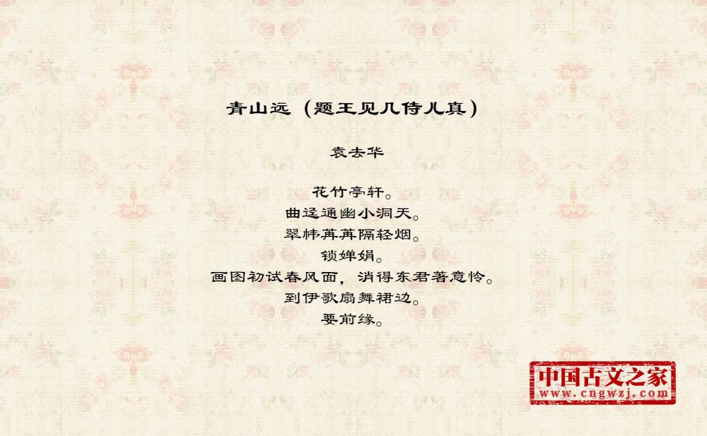 《青山远(题王见几侍儿真)》的原文打印版(袁去华)