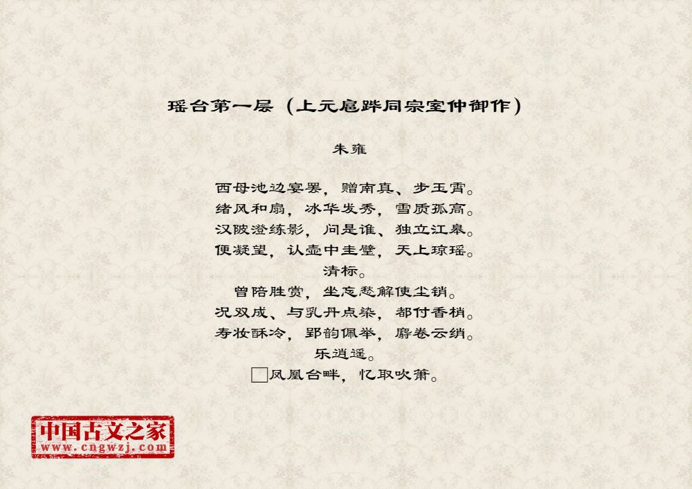 《瑶台第一层(上元扈跸同宗室仲御作)》的原文打印版(朱雍)