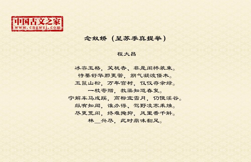 念奴娇(呈苏季真提举)
