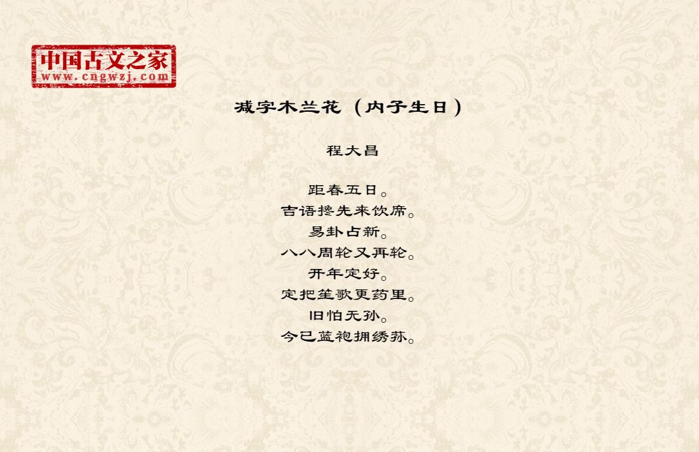 《减字木兰花(内子生日)》的原文打印版(程大昌)
