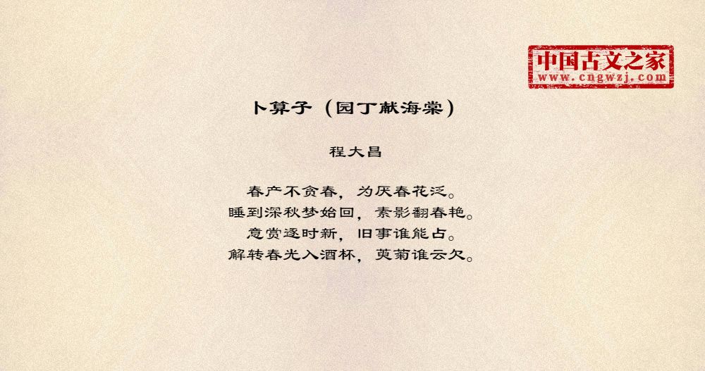《卜算子(园丁献海棠)》的原文打印版(程大昌)
