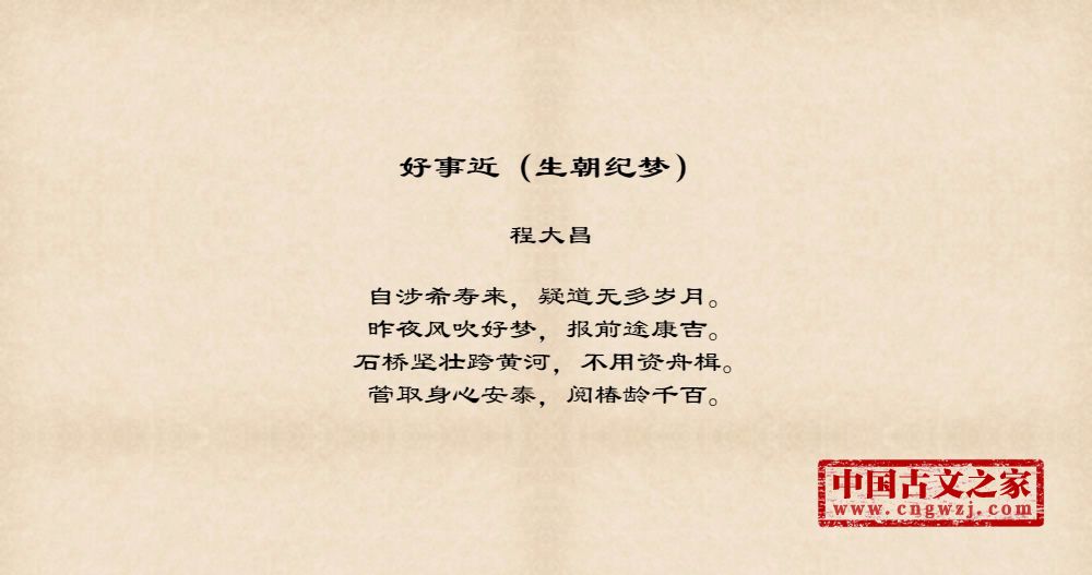 《好事近(生朝纪梦)》由程大昌创作