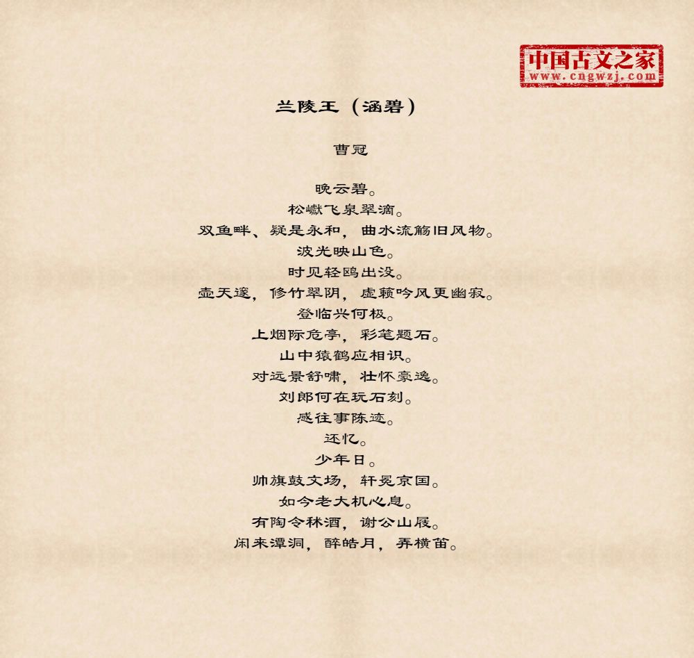 晚云碧。松巘飞泉翠滴。双鱼畔、疑是永和,曲水流觞旧风物。波光映山色。时见轻鸥出没。壶天邃,修竹翠阴,虚籁吟风更幽寂。登临兴何极。上烟际危亭,彩笔题石。山中猿鹤应相识。对远景舒啸,壮怀豪逸。刘郎何在玩石刻。感往事陈迹。还忆。少年日。帅旗鼓文场,轩冕京国。如今老大机心息。有陶令秫酒,谢公山屐。闲来潭洞,醉皓月,弄横笛。