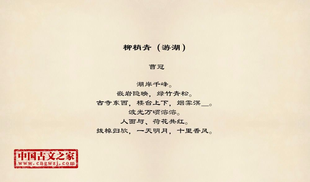 《柳梢青(游湖)》的原文打印版(曹冠)