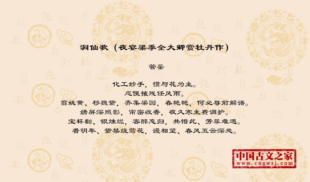 《洞仙歌(夜宴梁季全大卿赏牡丹作)》的原文打印版(管鉴)