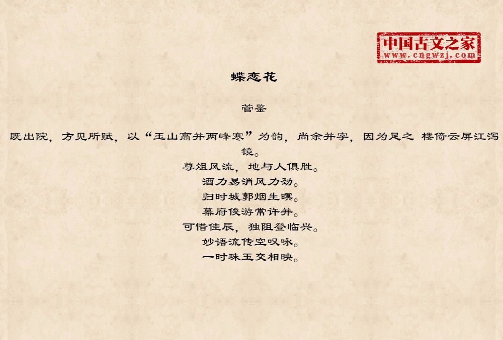既出院,方见所赋,以“玉山高并两峰寒”为韵,尚余并字,因为足之 楼倚云屏江泻镜。尊俎风流,地与人俱胜。酒力易消风力劲。归时城郭烟生暝。幕府俊游常许并。可惜佳辰,独阻登临兴。妙语流传空叹咏。一时珠玉交相映。