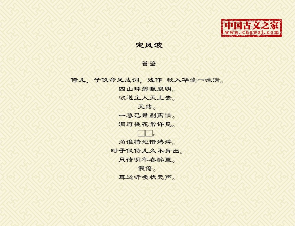 《定风波》的原文打印版(管鉴)