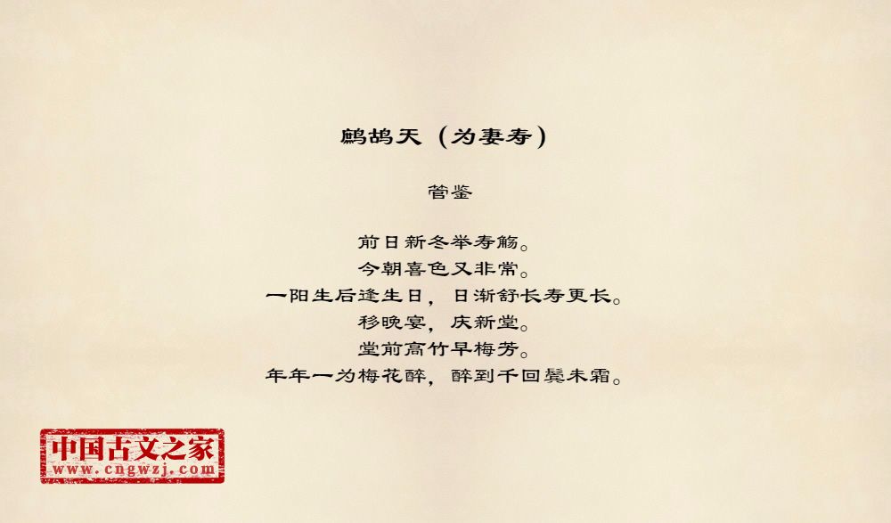 《鹧鸪天(为妻寿)》的原文打印版(管鉴)