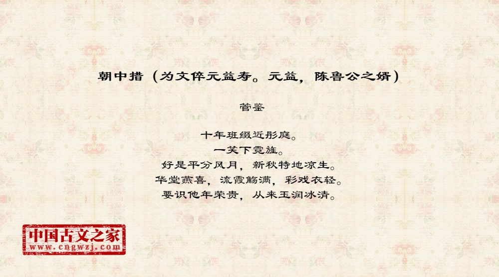 《朝中措(为文倅元益寿。元益,陈鲁公之婿)》由管鉴创作