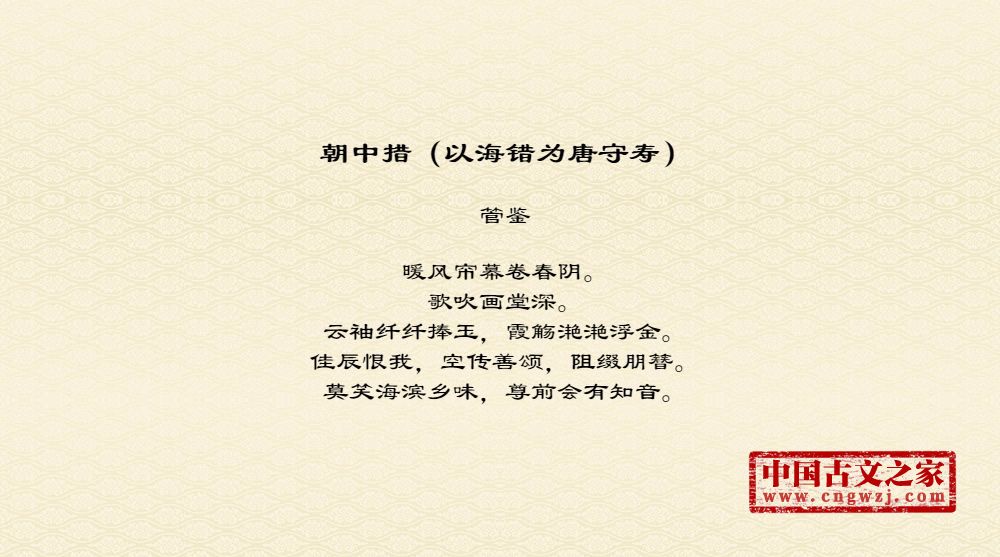 《朝中措(以海错为唐守寿)》的原文打印版(管鉴)