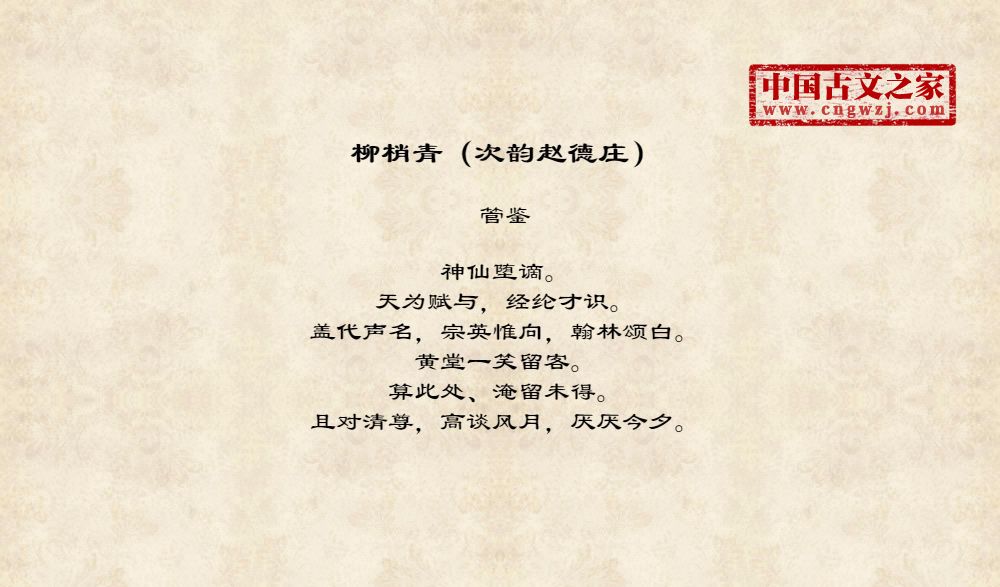《柳梢青(次韵赵德庄)》的原文打印版(管鉴)