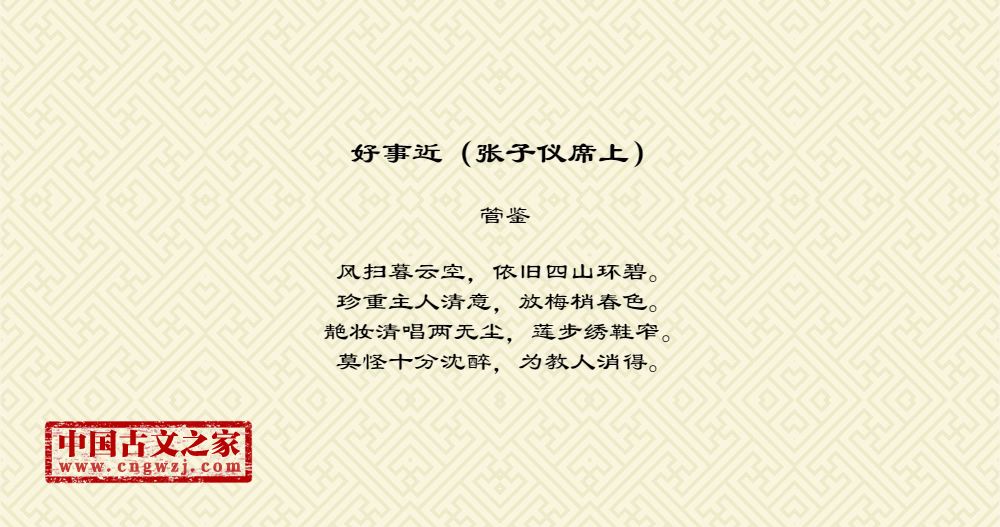 《好事近(张子仪席上)》的原文打印版(管鉴)