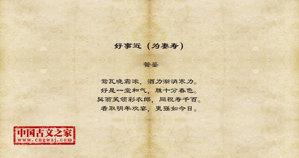 《好事近(为妻寿)》的原文打印版(管鉴)